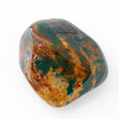 С химической точки зрения минерал является диоксидом кремния с включениями гематита, который и придает камню необычный окрас — яркие красные пятна на темно-зеленом фоне.