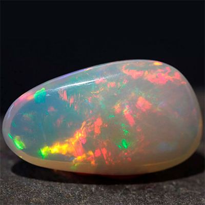 Химическая формула камня — SiO2·nH2O. Состав: гидрат диоксида кремния. Ювелирный камень боится резких перепадов температуры, сильного охлаждения и нагревания. Кроме того, из-за высокого содержания воды в своем составе, опалы нельзя держать в местах с сухим воздухом — им крайне важна достаточная влажность.